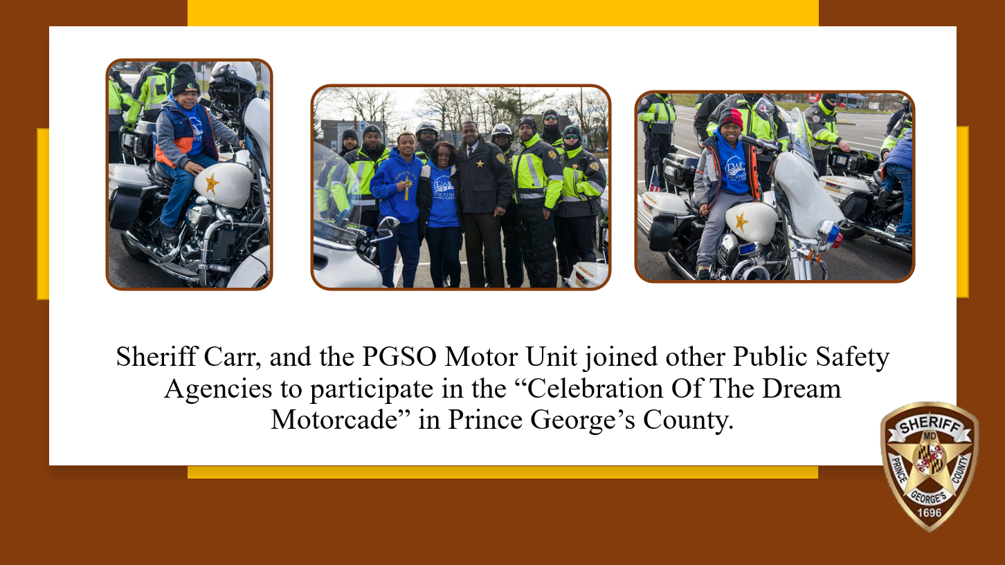 Sheriff Carr, and the PGSO Motor Unit joined other Public Safety Agencies to participate in the “Celebration Of The Dream Motorcade” in Prince George’s County!